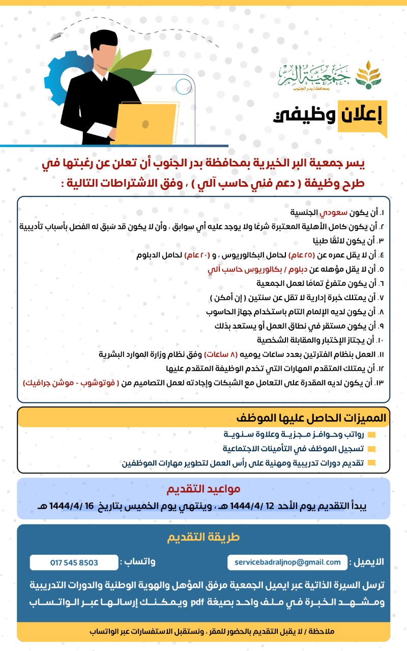 إعلان وظيفي جمعية البر ببدر الجنوب شارك بتعليقك إلغاء الردلن يتم نشر عنوان بريدك الإلكتروني. الحقول الإلزامية مشار إليها بـ *التعليق * الاسم * البريد الإلكتروني * الموقع الإلكتروني احفظ اسمي، بريدي الإلكتروني، والموقع الإلكتروني في هذا المتصفح لاستخدامها المرة المقبلة في تعليقي.