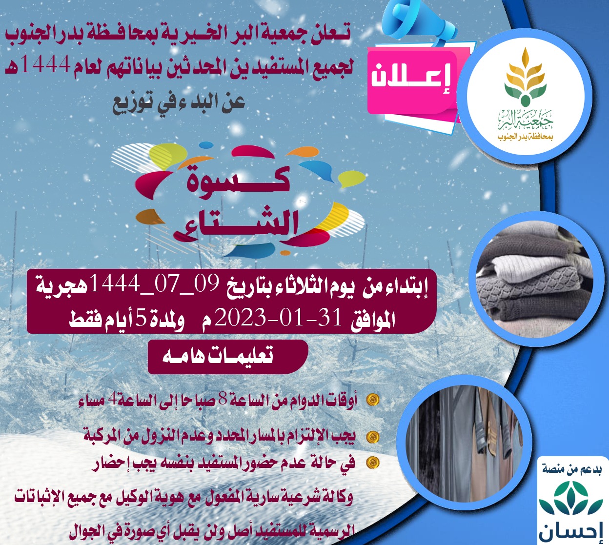 إعلان جمعية البر ببدر الجنوب شارك بتعليقك إلغاء الردلن يتم نشر عنوان بريدك الإلكتروني. الحقول الإلزامية مشار إليها بـ *التعليق * الاسم * البريد الإلكتروني * الموقع الإلكتروني احفظ اسمي، بريدي الإلكتروني، والموقع الإلكتروني في هذا المتصفح لاستخدامها المرة المقبلة في تعليقي.