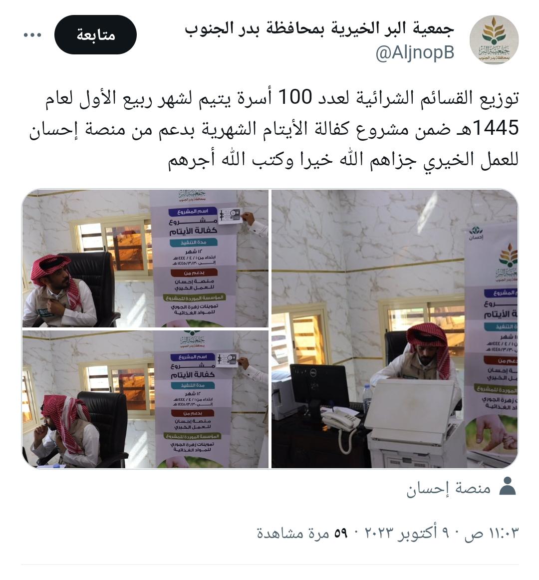 توزيع القسائم الشرائية ضمن مشروع كفالة الأيتام بدعم من منصة إحسان للعمل الخيري جمعية البر ببدر الجنوب شارك بتعليقك إلغاء الردلن يتم نشر عنوان بريدك الإلكتروني. الحقول الإلزامية مشار إليها بـ *التعليق * الاسم * البريد الإلكتروني * الموقع الإلكتروني احفظ اسمي، بريدي الإلكتروني، والموقع الإلكتروني في هذا المتصفح لاستخدامها المرة المقبلة في تعليقي.