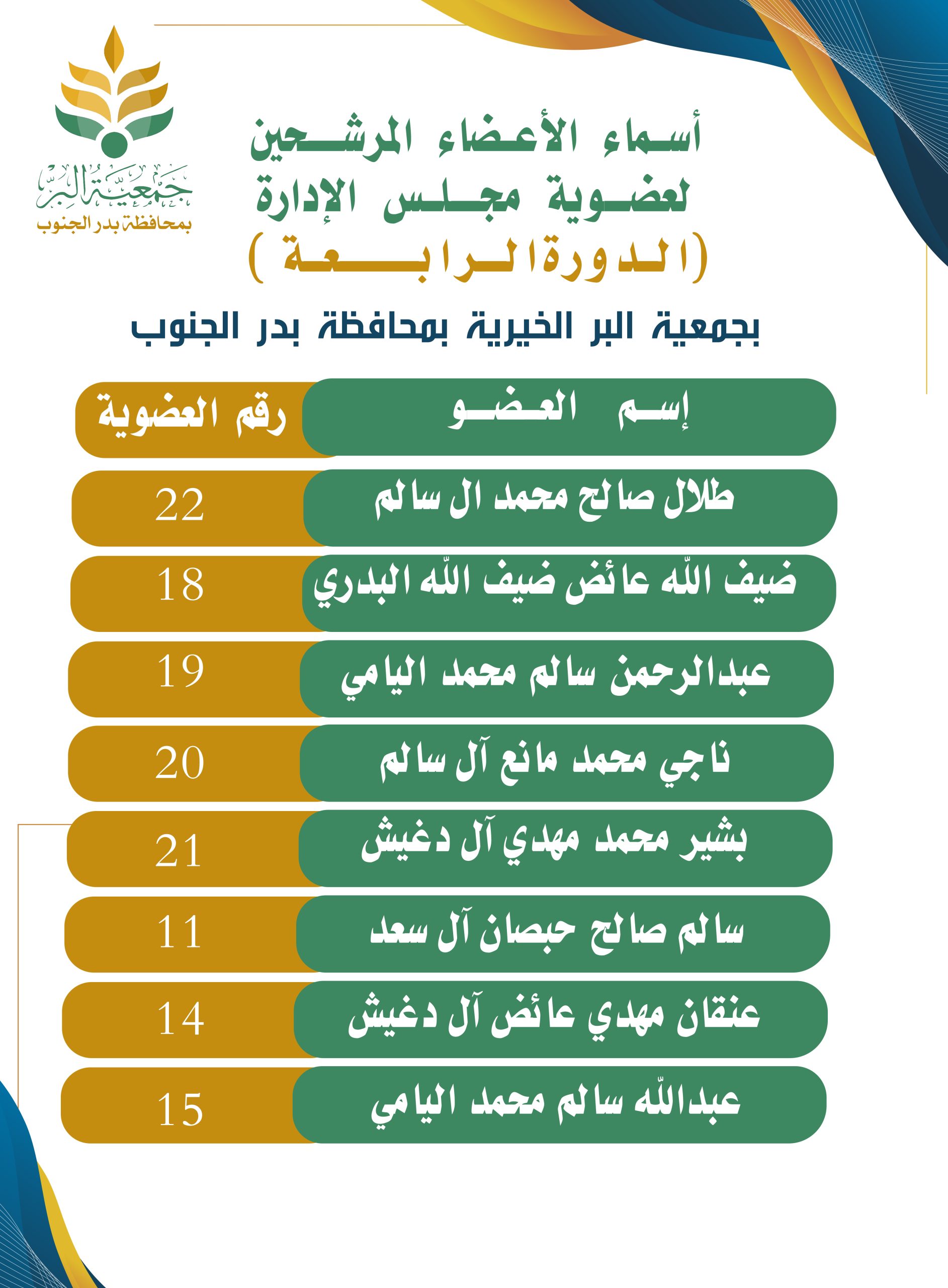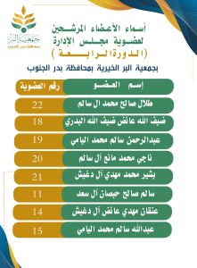 الأعضاء المرشحين لإنتخابات عضوية مجلس الإدارة جمعية البر ببدر الجنوب شارك بتعليقك إلغاء الردلن يتم نشر عنوان بريدك الإلكتروني. الحقول الإلزامية مشار إليها بـ *التعليق * الاسم * البريد الإلكتروني * الموقع الإلكتروني احفظ اسمي، بريدي الإلكتروني، والموقع الإلكتروني في هذا المتصفح لاستخدامها المرة المقبلة في تعليقي.