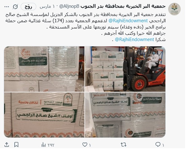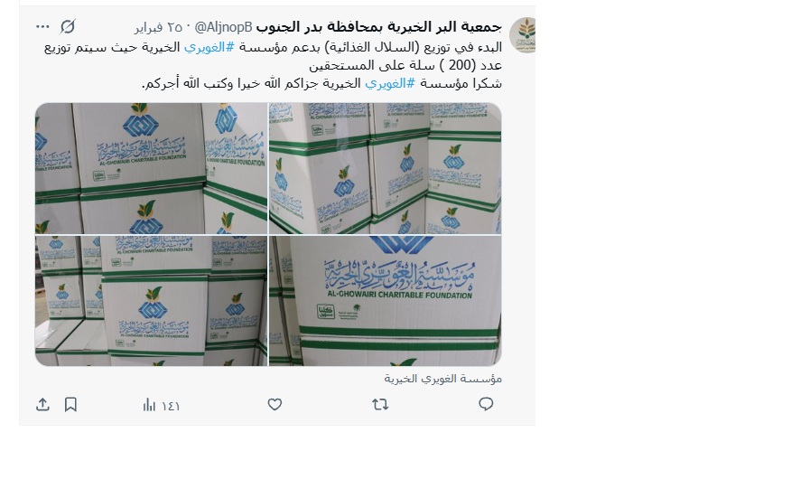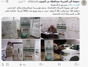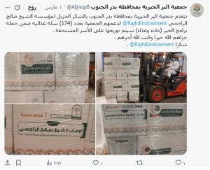 مشروع السلال الغذائية الرمضانية لعام 1447هـ بدعم (عبدالسلام الراجحي -الغويري الخيرية – صالح الراجحي -أرامكو )جزاهم لله خيرا جمعية البر ببدر الجنوب شارك بتعليقك إلغاء الردلن يتم نشر عنوان بريدك الإلكتروني. الحقول الإلزامية مشار إليها بـ *التعليق * الاسم * البريد الإلكتروني * الموقع الإلكتروني احفظ اسمي، بريدي الإلكتروني، والموقع الإلكتروني في هذا المتصفح لاستخدامها المرة المقبلة في تعليقي.